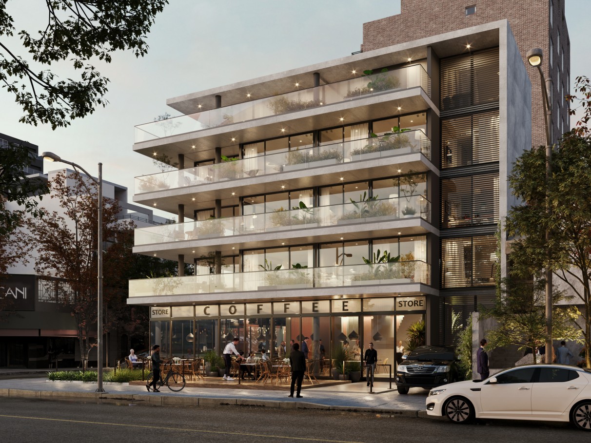 Rodeado de cada vez más propuestas gastronómicas emergentes, locales en constante renovación y embelleciendo la zona que caracteriza al mismo, convive el edificio, compuesto por locales en planta baja y luego unidades de vivienda en las plantas posteriores.
