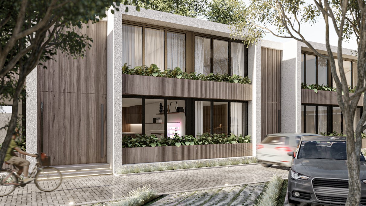 Obteniendo la mayor privacidad entre las unidades, e integrando áreas verdes, juegos para niños y cocheras, generando un entorno funcional y cálido.